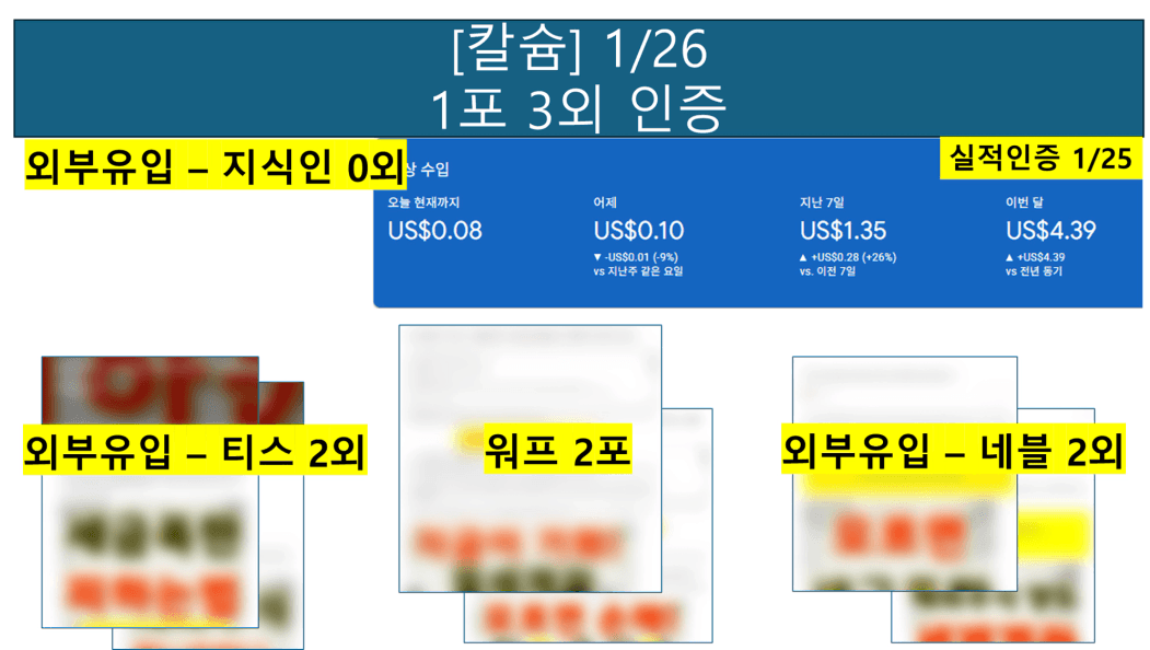 [칼슘] 1/26 1포3외 , 1/25 수익인증