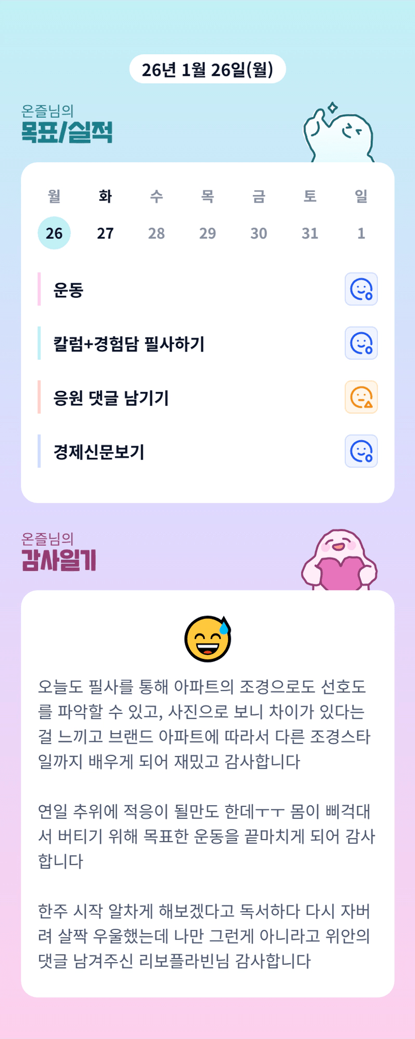 온즐님 오늘하루도 고생하셨습니다!! 필사하시는거 보고 많은 도움이 되고있습니다. 저도 요즘 10억달성기 읽기 시작했어요.. 언젠간 저도 필사? 도전~~ ^^