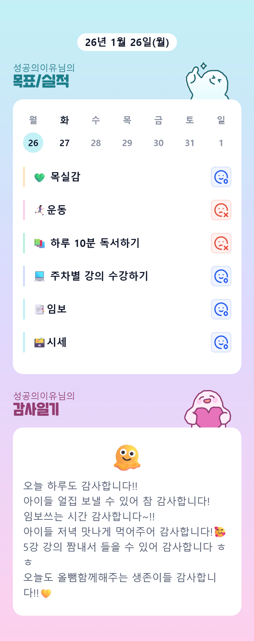 성공님~~ 저녁 메뉴는 무엇이었을까요 궁금하네유~~ ㅎㅎㅎ 어제도 정말 고생 많으셨습니다! 컨디션이 금방 돌아와서 다행이에요~~ 따뜻한 차 홀짝홀짝 드시면서 남은 시간도 치열하게 화이팅입니다!!♥ 오늘도 기분 좋은 하루 만들어가셔요~~