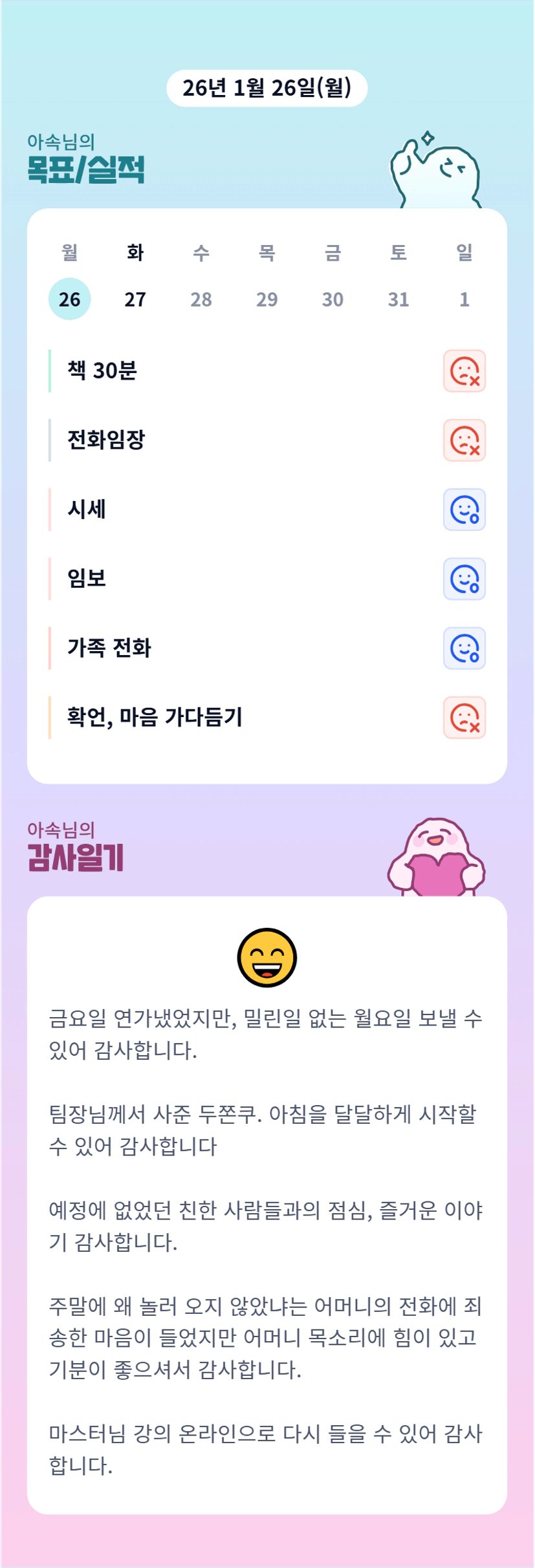 부모님과의 통화, 저도 오늘 BM 하겠습니다. ^^ 오늘 하루도 고생하셨습니다!