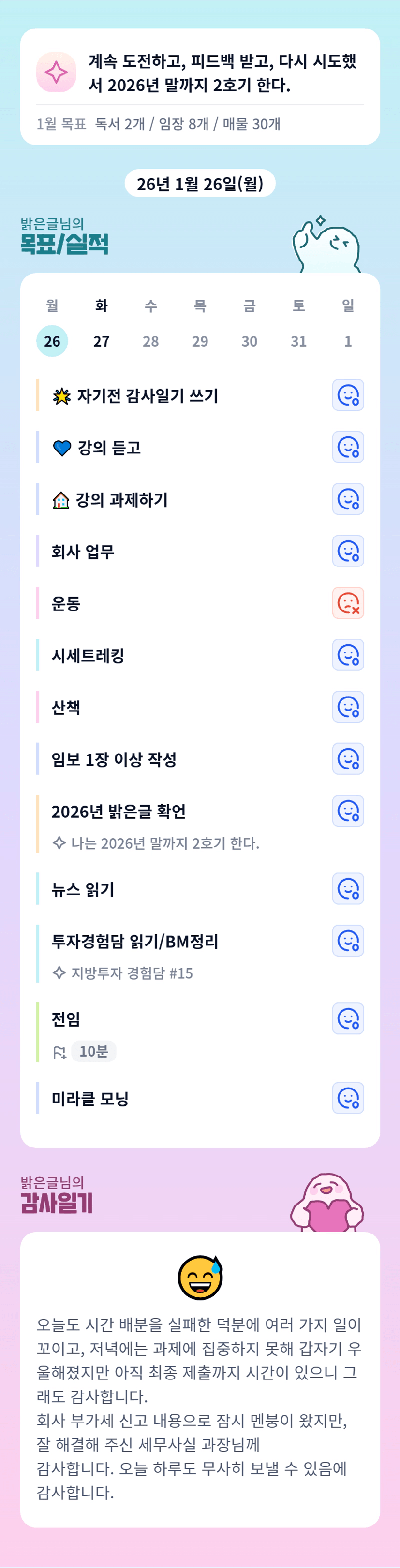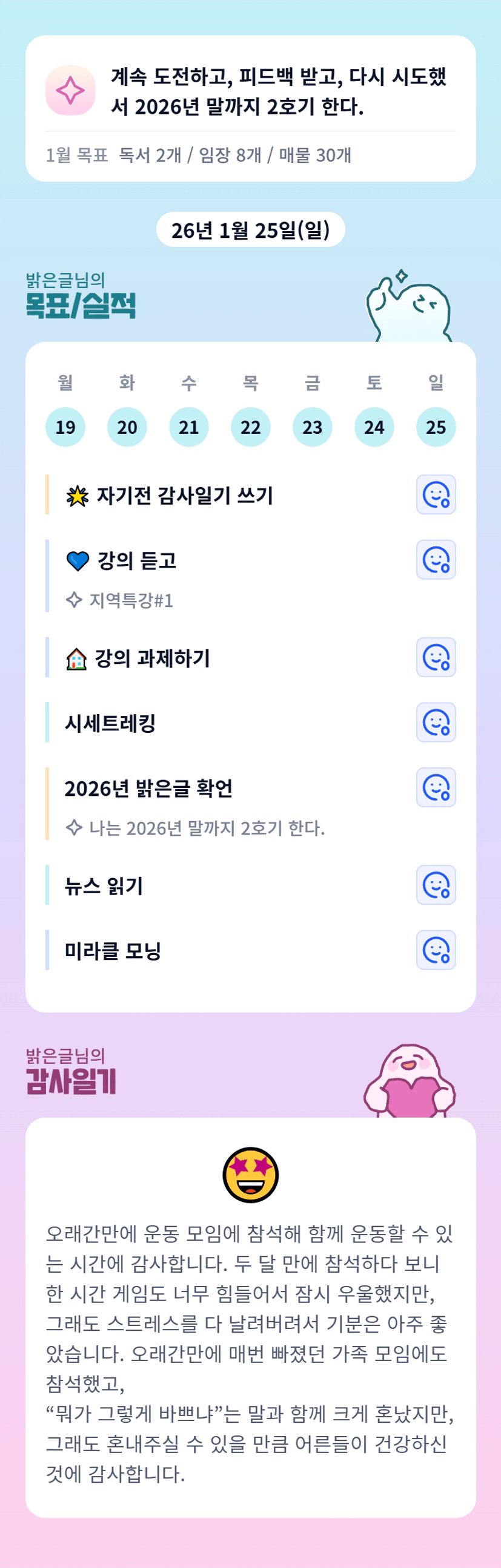 밝은글님! 항상 응원하고 있어요! 화이팅입니다!