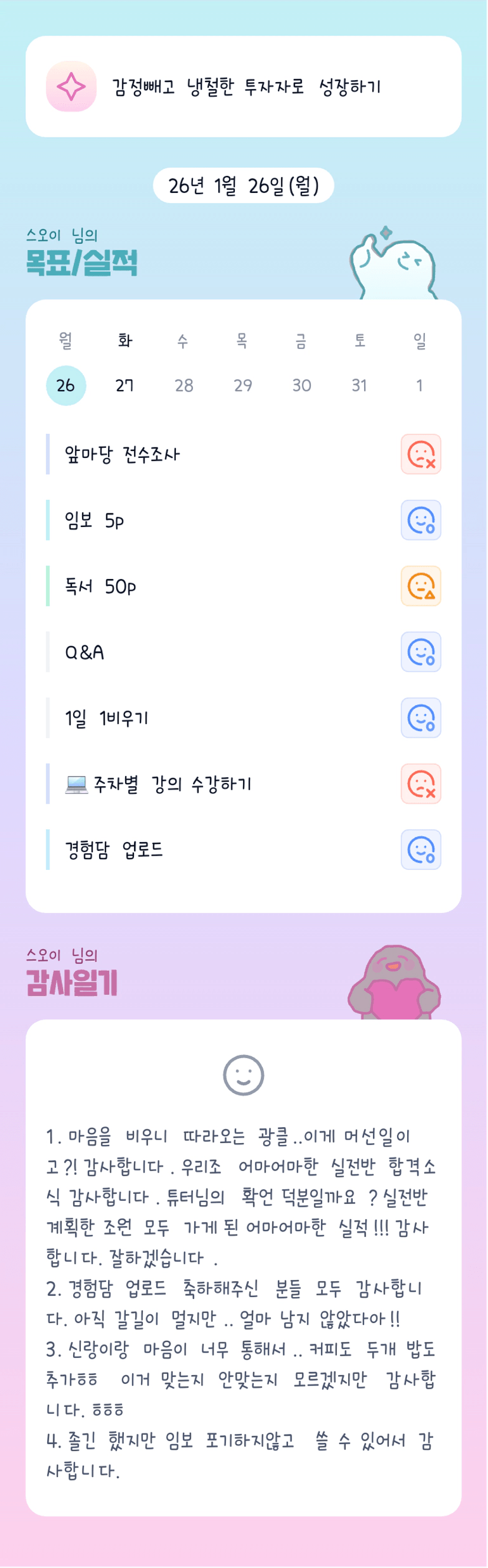오이님 다시한번 실전반 광클성공 축하드려요~ 26년1월부터 럭키비키한 오이님🥒🍀