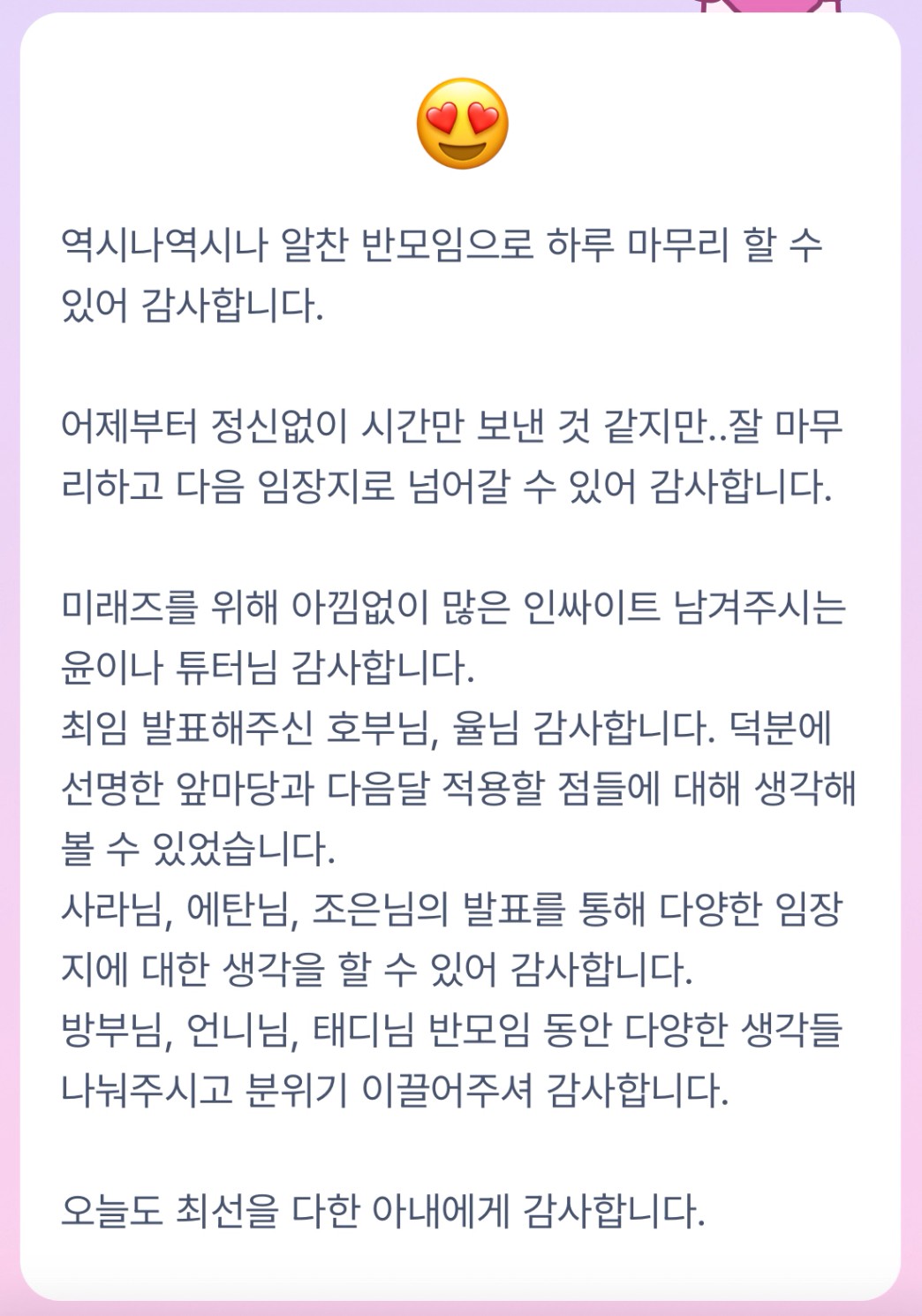 반장님 넘나 고생하셨어요. 운영진의 무게감이란....반장님이 우리반 반장님이라 든든합니다