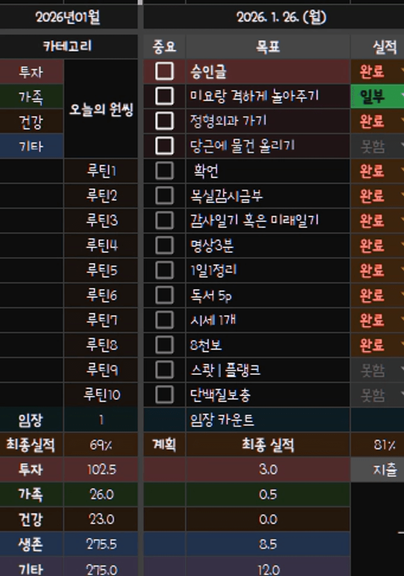 운동도 안하고, 당근 올리기도 안했지만, 꾸역꾸역 명상/정리/독서/시세/글쓰기 루틴 할 수 있어 감사합니다.