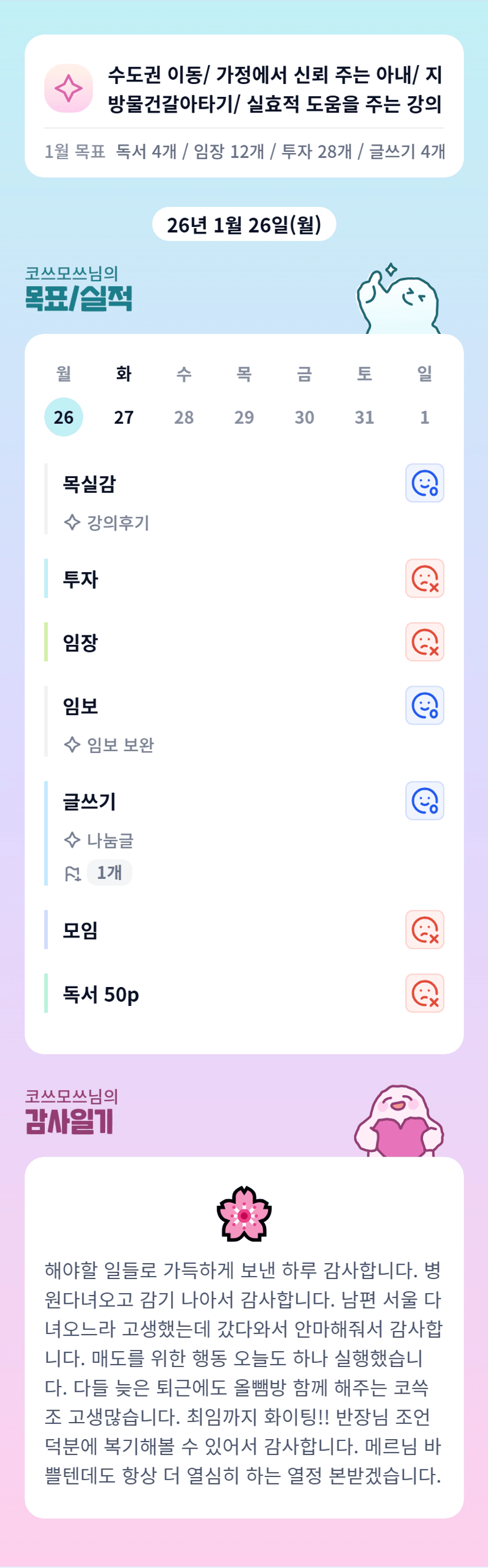 튜터님 감기 나으셨다니 호재네요ㅎㅎ 고생하셨습니다 🌸