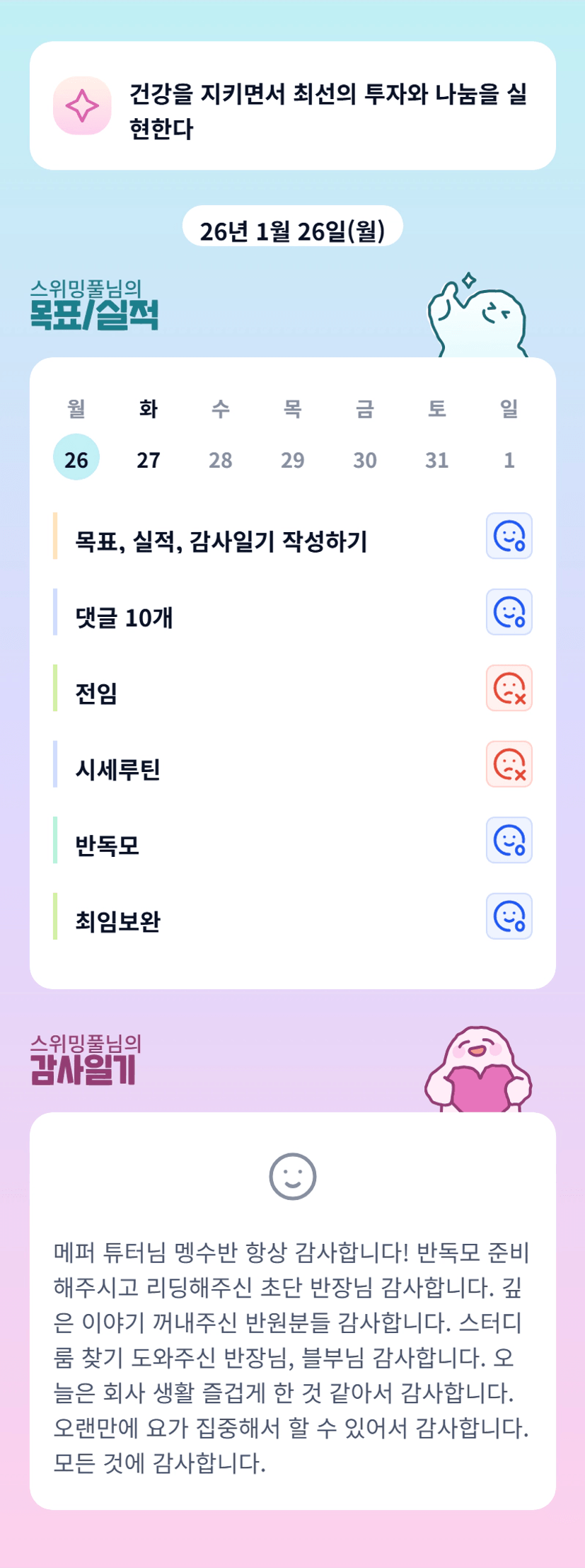 바쁜 상황 중에도 시간 날 때마다 요가를 꾸준히 하고 계시는군요~ 대단하셔요 ㅎㅎ 스터디룸 잡아주셔서 너무 감사드려요!!!