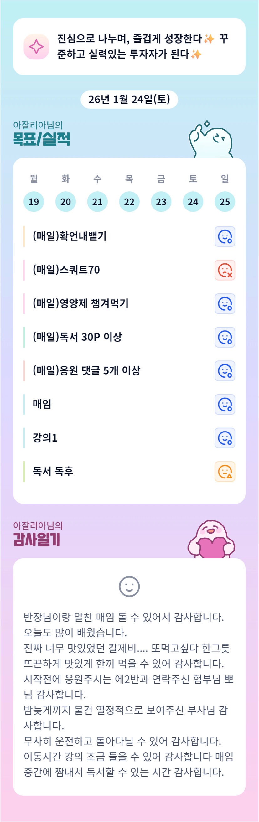 리아님 꽉찬 한주 넘 고생많으셨어용😍