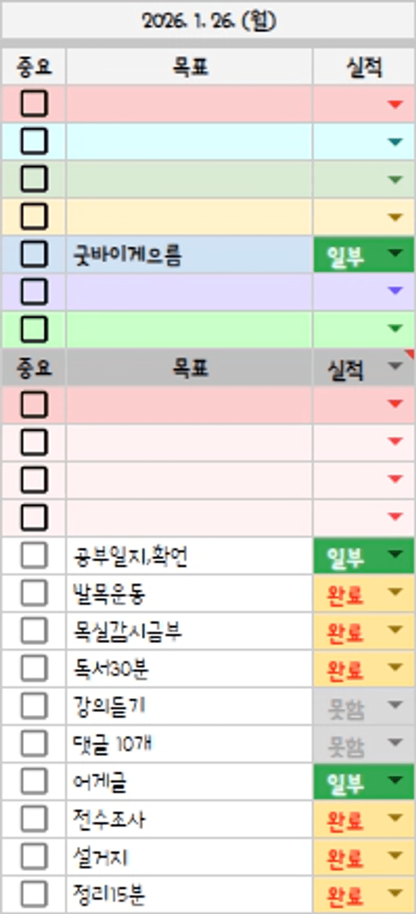 2. 급 컨디션 하락으로 공부는 잘 안됐지만 그럼에도 하려고 애쓴 시간 감사합니다.