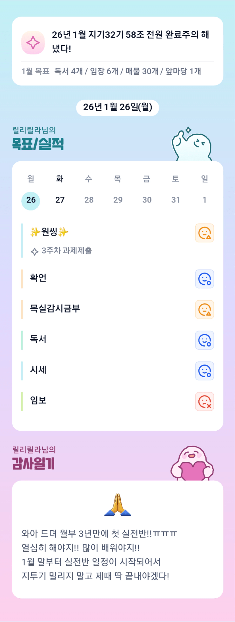 실전반 축하드립니다~!! 완수 화이팅입니다 ㅎㅎㅎ