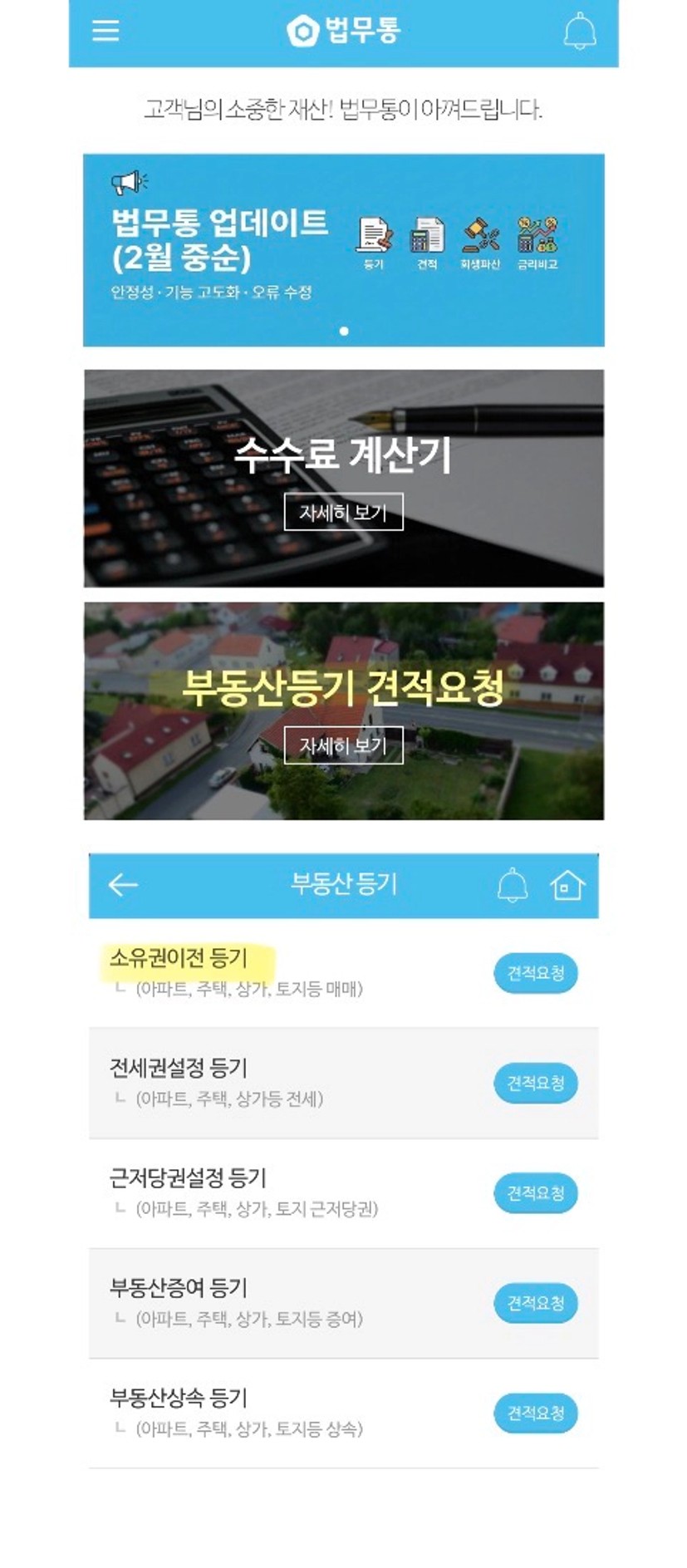 등기 견적을 받을수 있는 어플입니다
