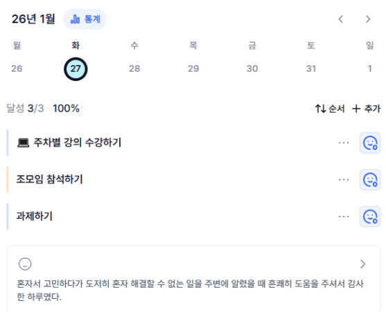 목실감을 쓸때마다 일상을 되돌아보게 되었고 오늘도 할 일을 해냈다는 성취감도 생겼다.