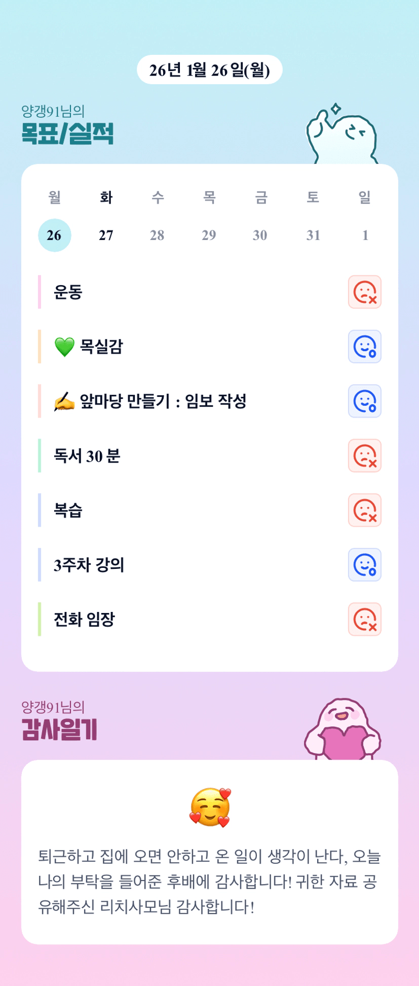 어제 하루가 아주 길었을 양갱님 너무너무 고생많으셨어요!!! 열정열정~~!🔥🔥
