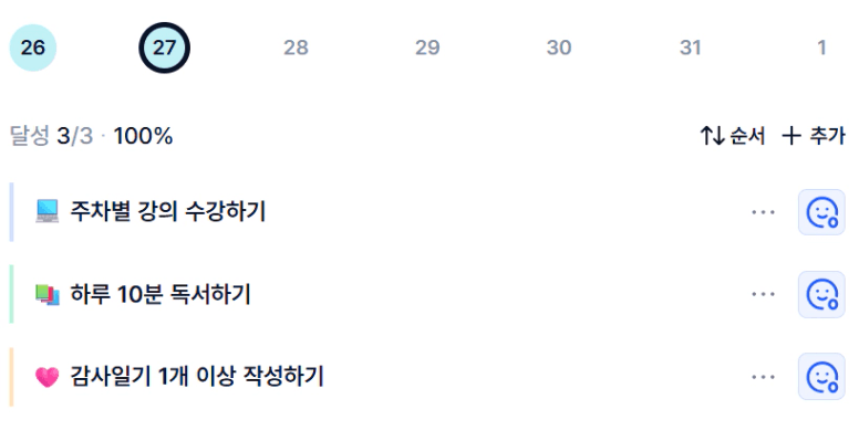 혼자 였더라면 절대 못했을 목실감(과제).. 생각보다 내 삶에 감사한 일들이 매우 많았고 무탈한 소중한 일상이 얼마나 중요한지 다시 한번 깨닫게 되었다. 어느덧 완강을 맞이했는데 사실 3주밖에 안되었지만 이 시간 안에서 한층 더 성장한 나를 돌아볼 수 있었다.