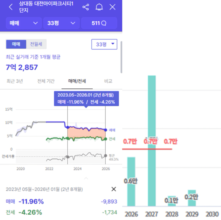 해당 단지뿐만 아니라 대전 전 지역의 매매가가 하락한다면