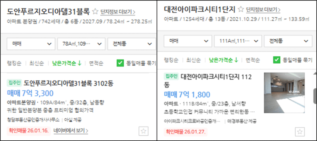 도안신도시 14년식 호반베르디움 VS 대전 대장 둔산동 크로바