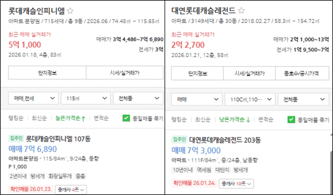 바로 옆에 위치한 18년식 롯데캐슬레전드가 7.5억이므로