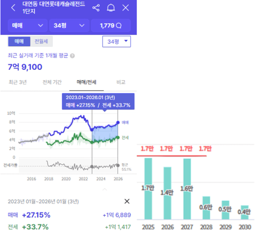 27년에 도안신도시를 중심으로 대규모 공급이 예정되어 있지요.
