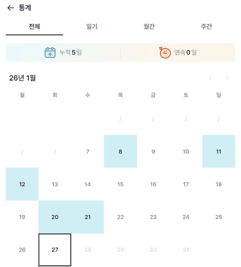 오늘부터 목실감 다시 최소 일주일에 3번이상 작성 목표 - 꾸준히!