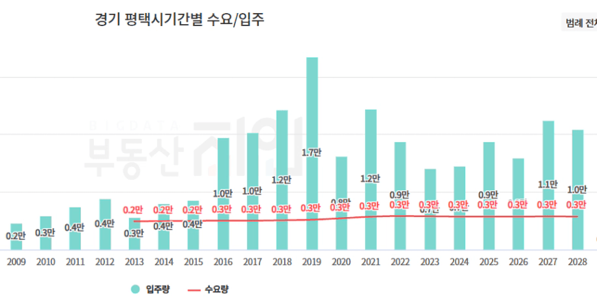 평택의 인구 규모 대비 적정 공급 물량은 연간 약 3,000세대 수준이며,