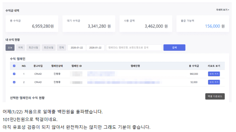 광고를 하는 것이기 때문에 DB가 꾸준히 나오기만 하면 광고를 켜두기만 해도 돈을 벌 수 있는 구조입니다.