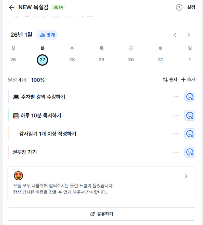 2️⃣ 3주간 목실감을 작성하며 어땠는지 소감도 써보기 ✍🏻