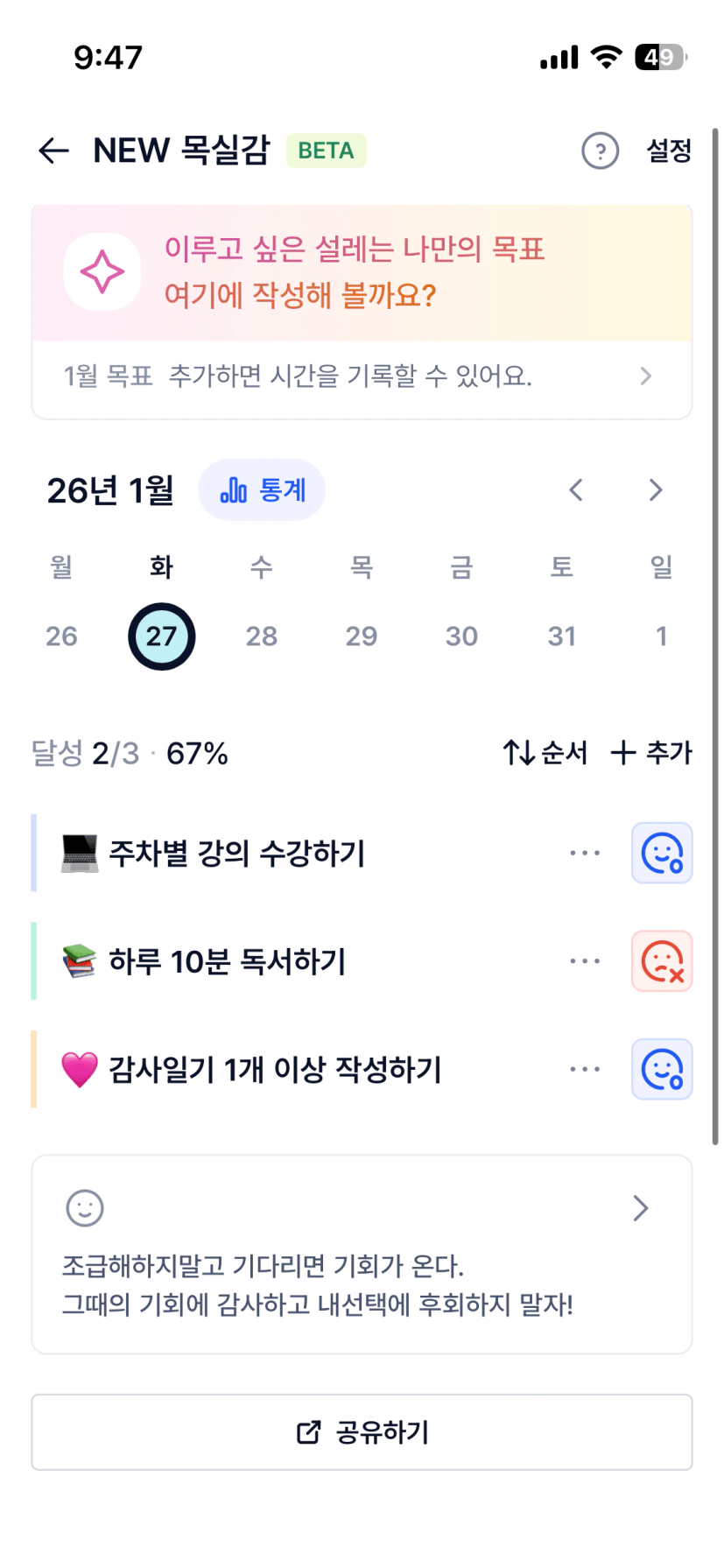 2️⃣ 3주간 목실감을 작성하며 어땠는지 소감도 써보기 ✍🏻