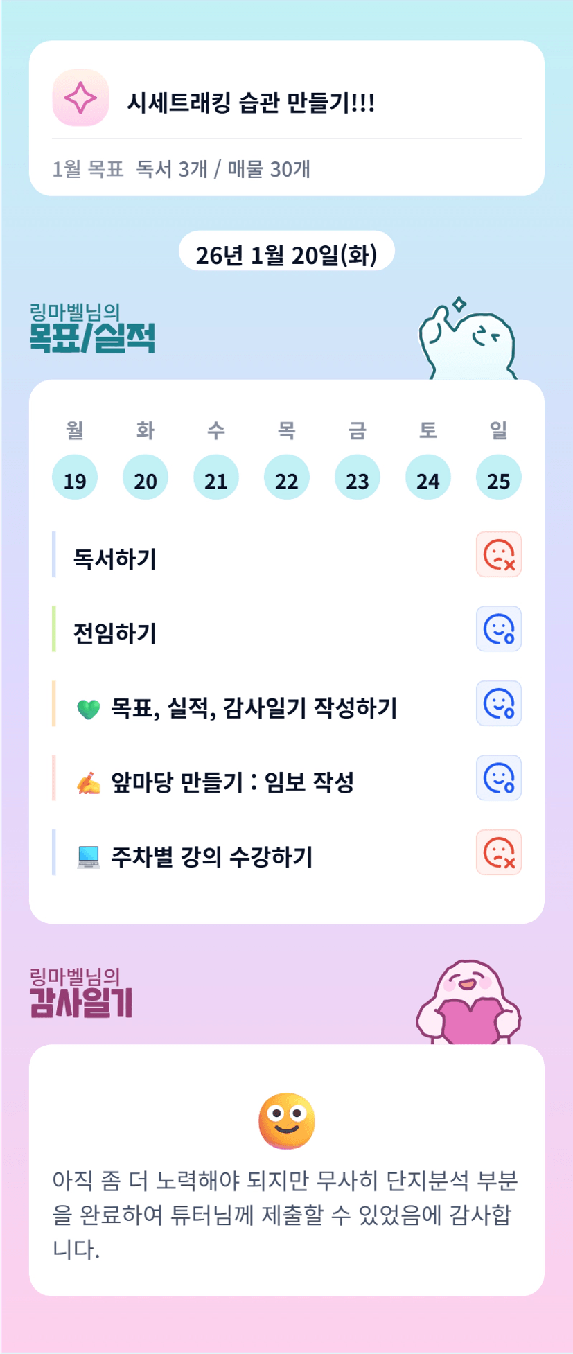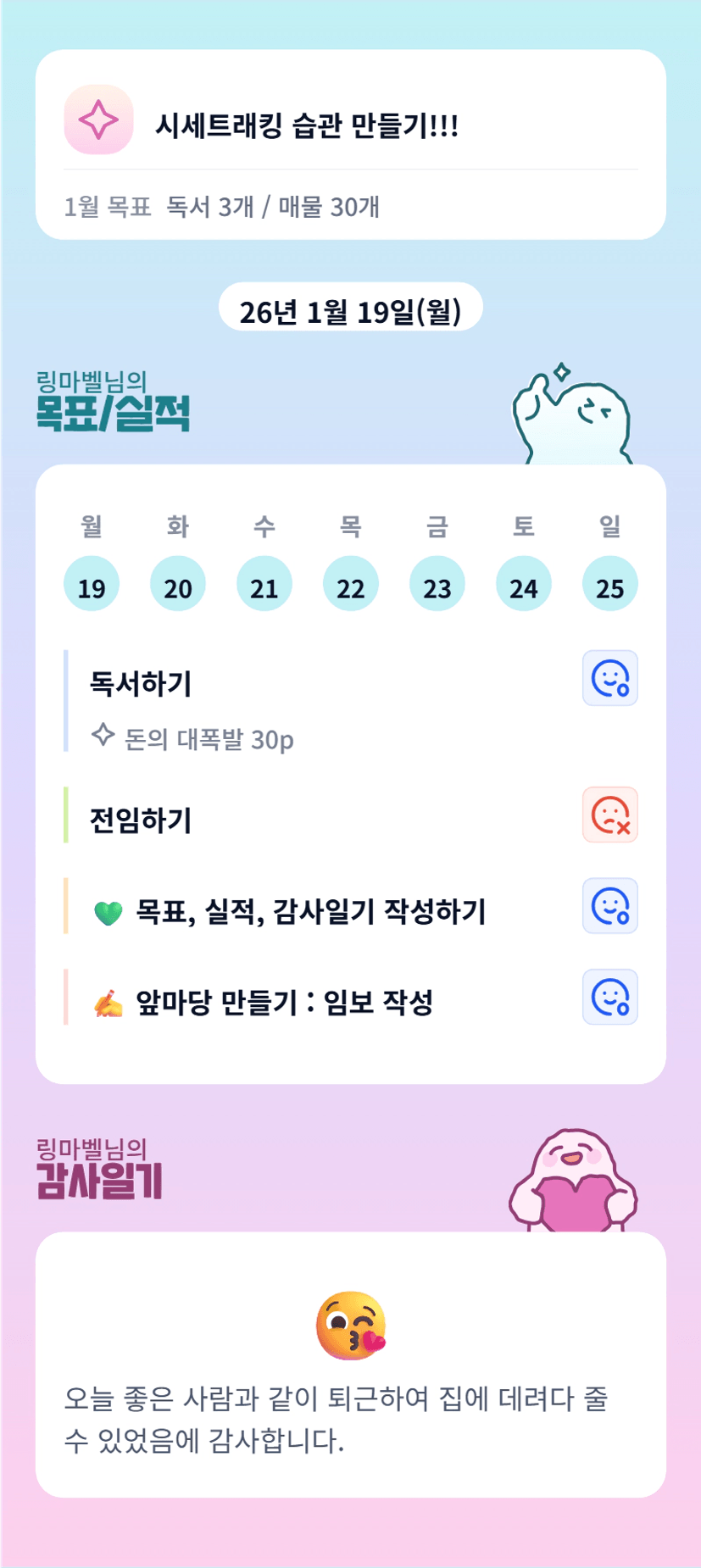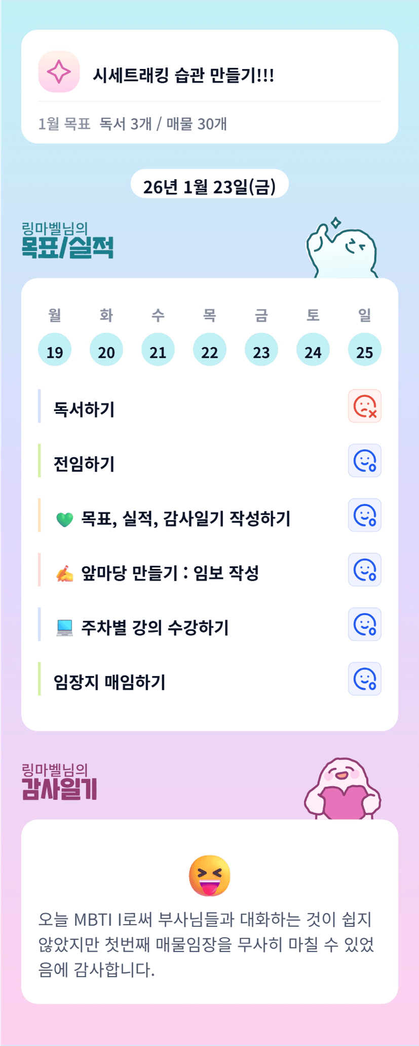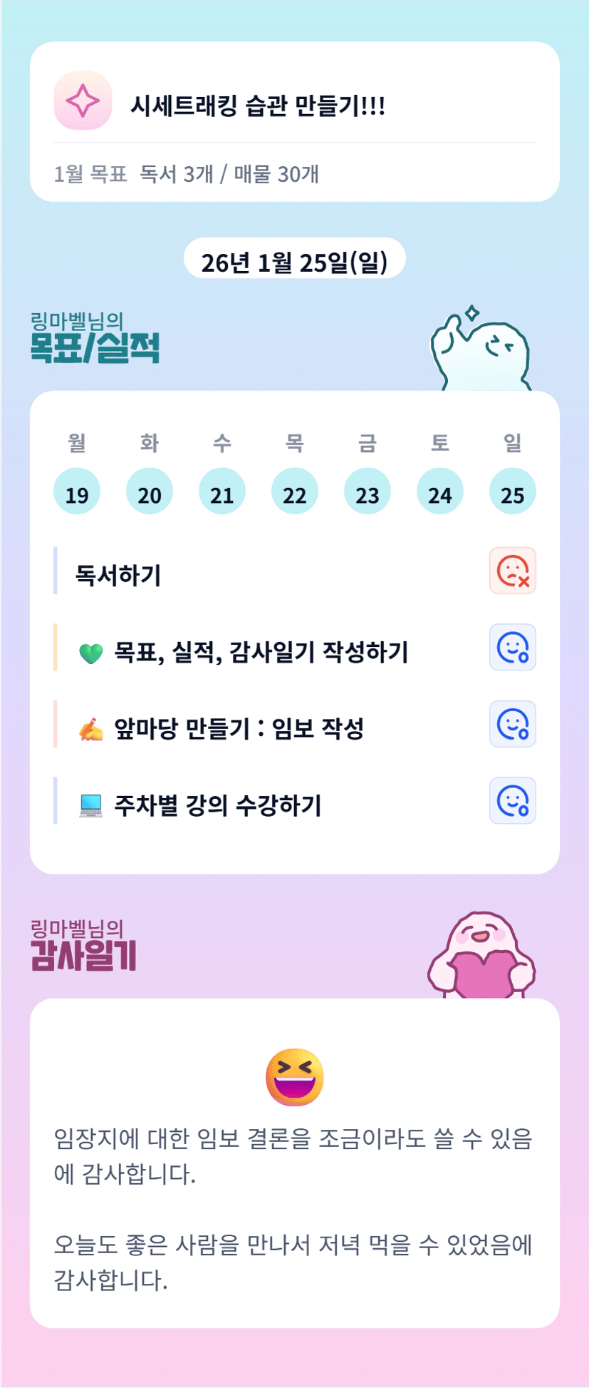 벨님 1월 한달 고생 많이 하셨습니다. 벨님 덕분에 올뺌이 즐거웠었고, 늘 재치있는 인증샷으로 웃음주셔서 감사했습니다. 😊🙏 2월 어느자리에 있던지 성장하실 벨님 응원하겠습니다! 화이팅!!!🌈😄💖✨️