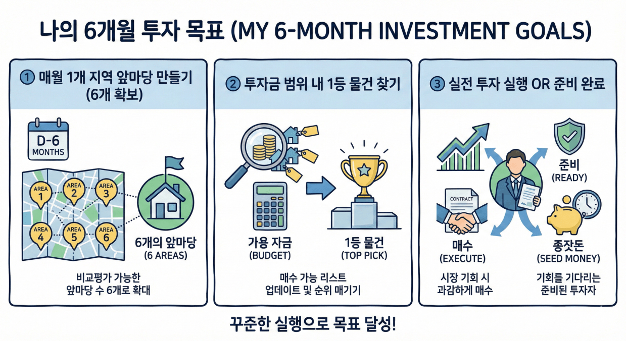 ③ 잃지 않는 투자의 원칙 지키기: 조급함에 아무거나 사지 않겠다. 직접 임장해보면서 보고서를 작성하고, 내 종잣돈 범위 내에서 ‘가장 좋은 것’을 사는 원칙을 지키겠다.