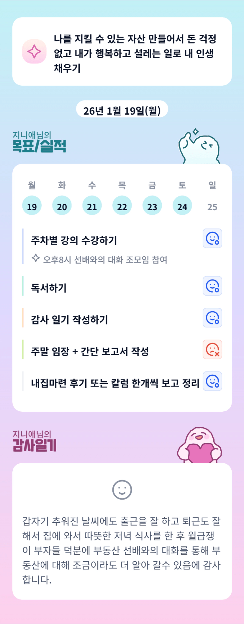 하루를 놓쳐버려 아쉽지만 내 스스로를 토닥이면서 다음주도 화이팅입니다!