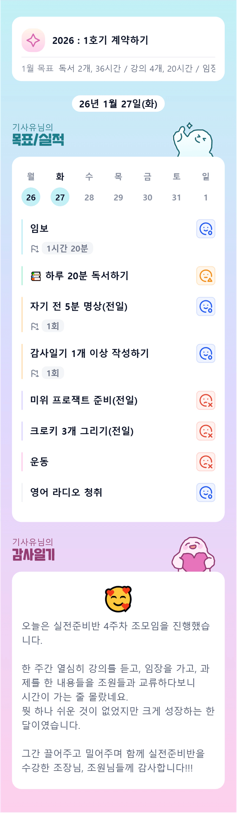 기사유님~ 앞마당 만들기하며 크게 성장한 한 달을 보내셨군요^^ 한달 동안 정말 고생 많으셨어요~ 앞으로도 쭉쭉 팟팅이에요😊