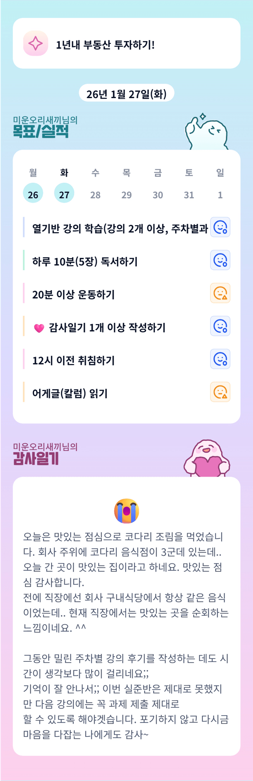 실전준비반 72기 집사사 44원정대_미운오리새끼] 1주차 후기_너무 잘하려고 애쓰지 말고 그냥 하자!