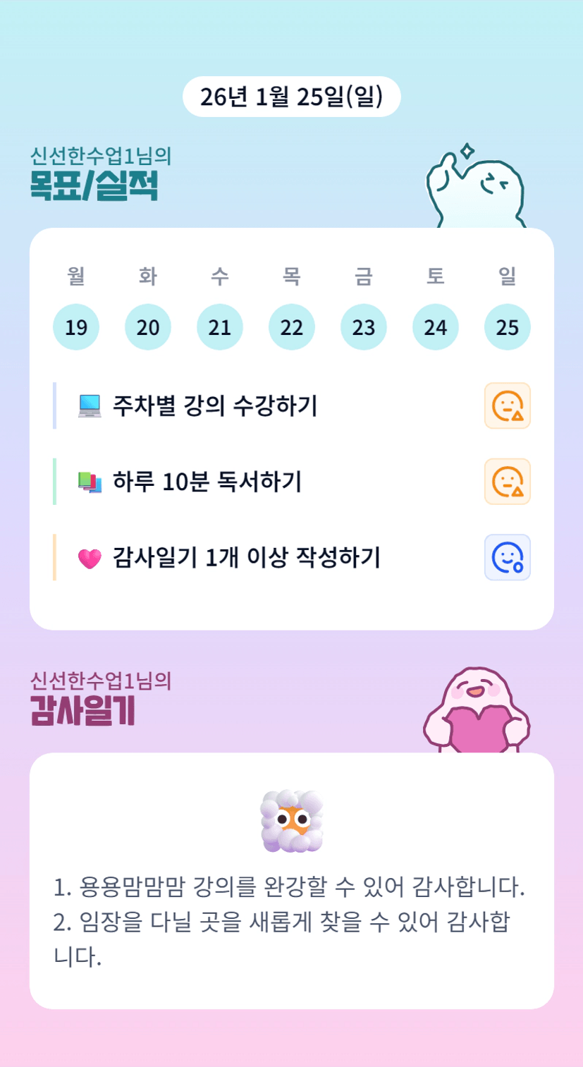3주차 목실감 실적 넘 좋아요!!! 와~ 역시 멋쬬용~~~ ^^