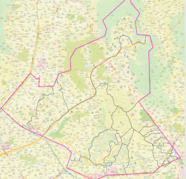 상권과 대장단지, 학원가, 법정동을 고려하여 분임루트를 그리고