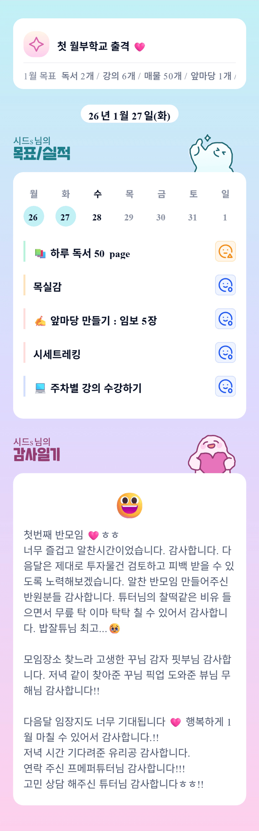 반장님 오늘 준비해주셔서 감사햇고용💜 넘 고생많으셧어요😆ㅎㅎ