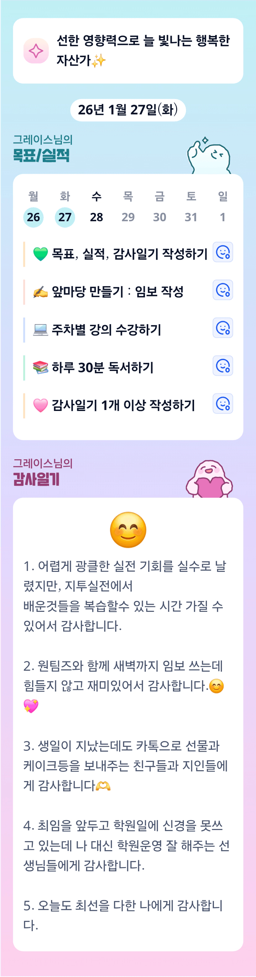 오늘도 최선을 다한 나에게 감사하기 긍정마인드 멋져요 이스님💕 이스님께 항상 많이 배우고 갑니다💕