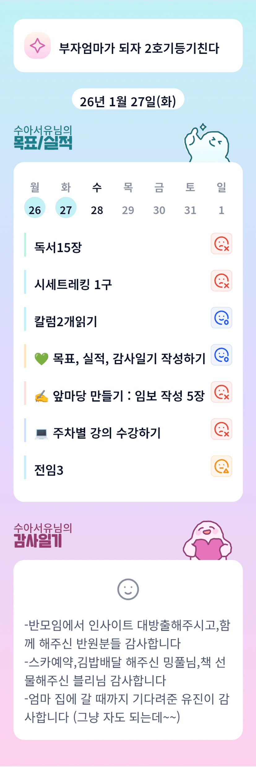 ㅎㅎ 그냥 자도 되는데~~>_< 워킹맘 서유님 진짜 모든걸 다 해내고 계신 서유님 멋지십니다! 넘넘 대단하세용 정말! 고생하셨습니다♡