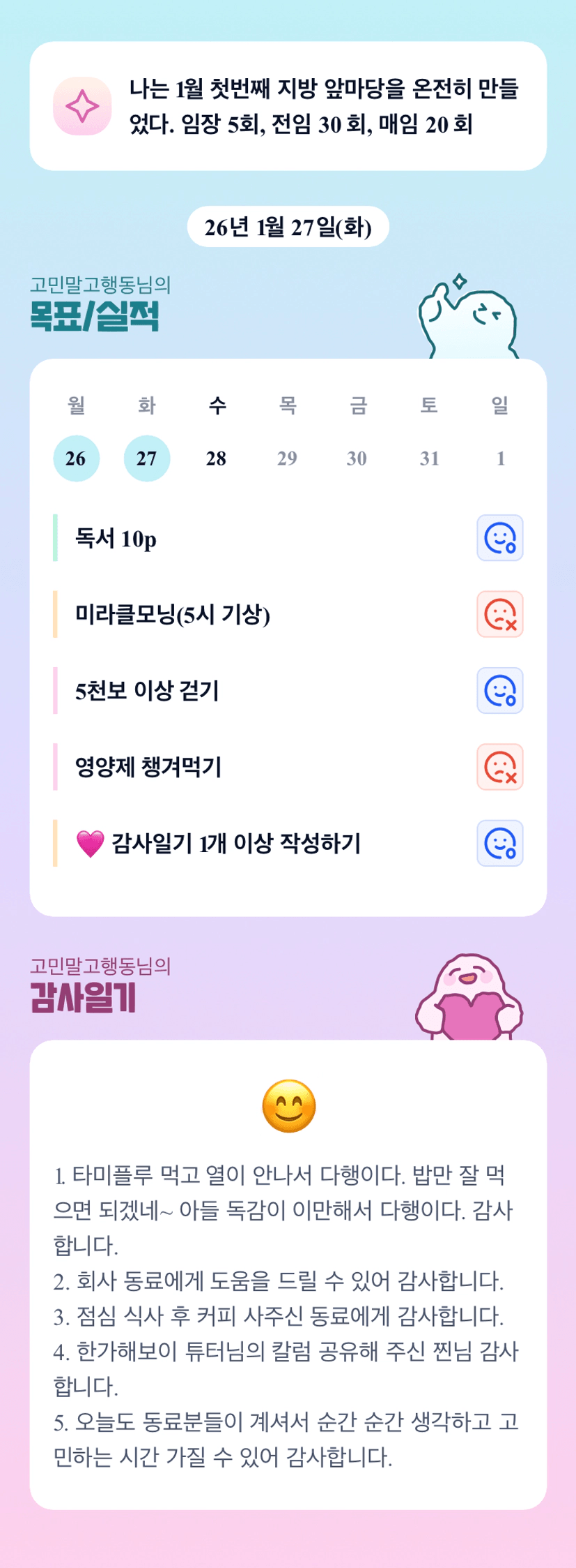 아고.. 아이 독감+방학이라 뭔가 엄마시간이 더 들어가니 쉽지 않네요^^;; 마무리까지 잘 해야하는데.. 조장님 함께 힘내 보아요!! 홧팅!