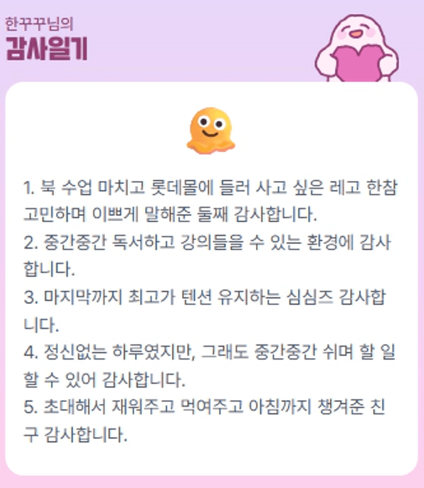 정신없이 바쁜 하루셨지만 모든 목표 완료!! 꾸꾸님 고생 많으셨어요❤️ ㅎㅎㅎ