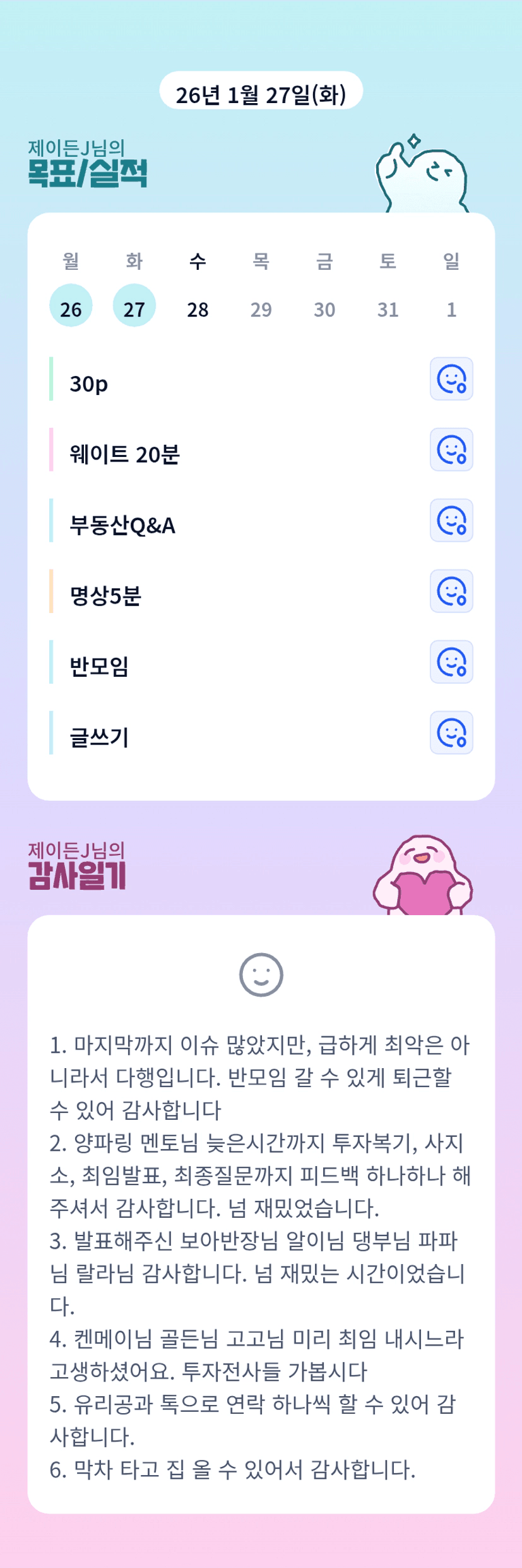 크으 이든님 ㅠㅠㅠ반모임 늦지 않아서 정말 다행입니다.어제 정말로 고생 많으셨습니다🩷