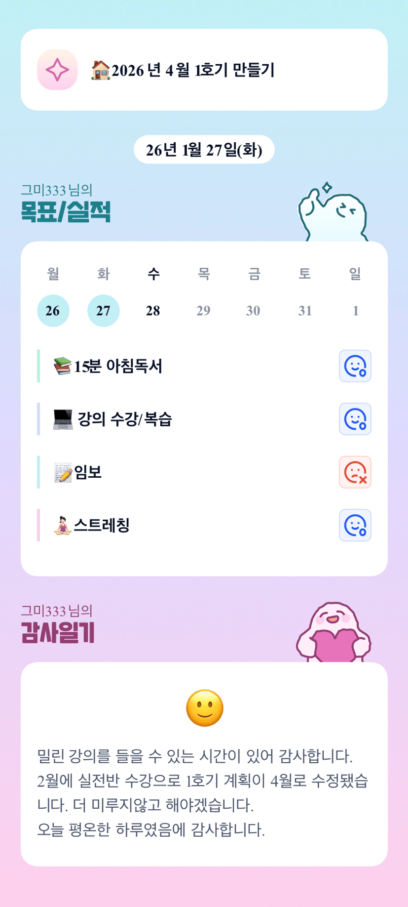 독서루틴 멋지네요! 실전반+1호기 잘 되실거에요~