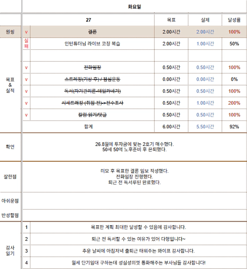 잘한 점이 빛나는 알찬 하루 보내셨네요^^~ 고생하셨습니다