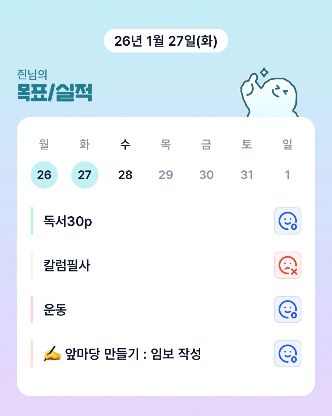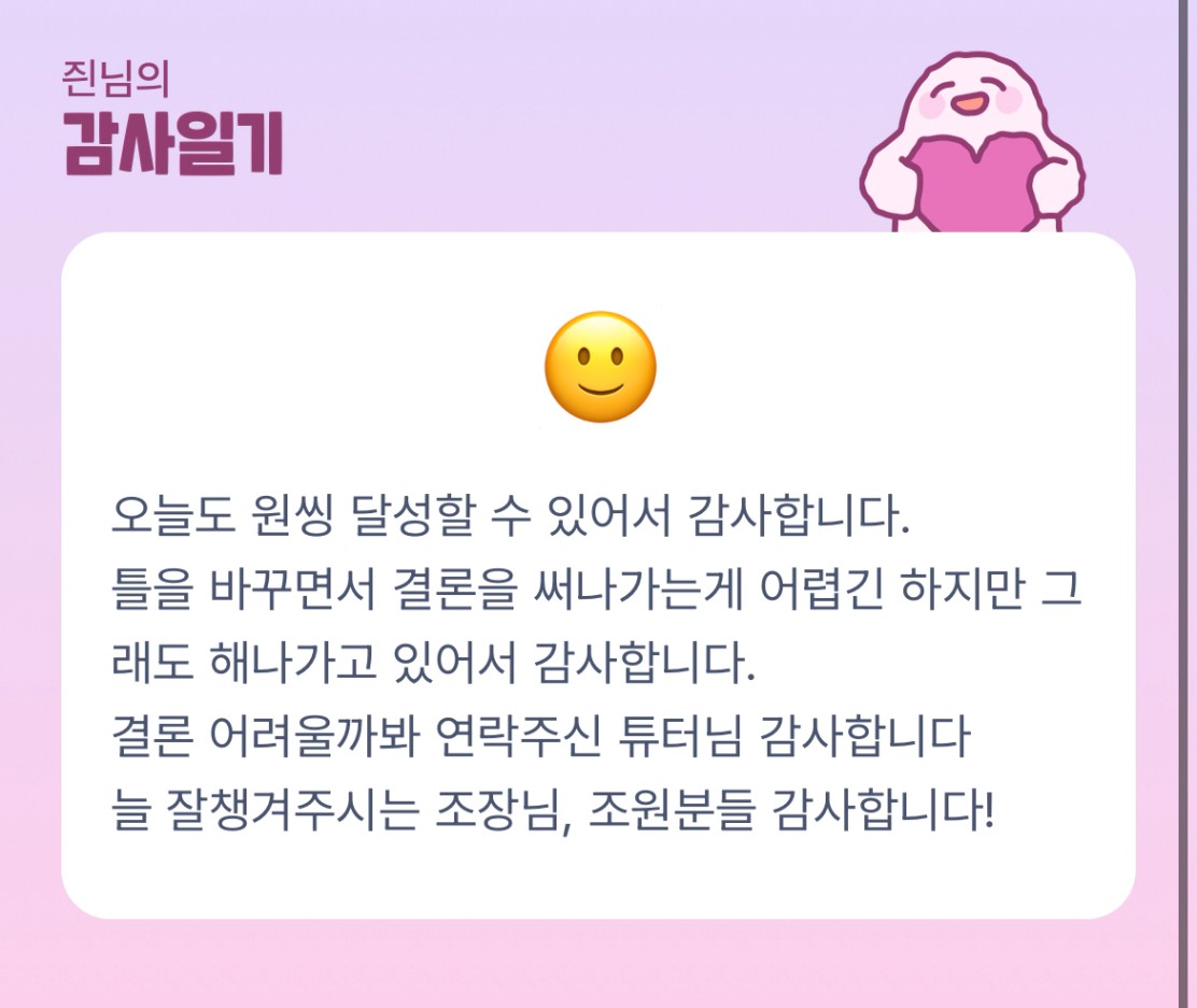 와~~즨님 틀을 바꾸신거예요? 한달동안 많이 배웠습니다 마지막까지 화이팅입니다