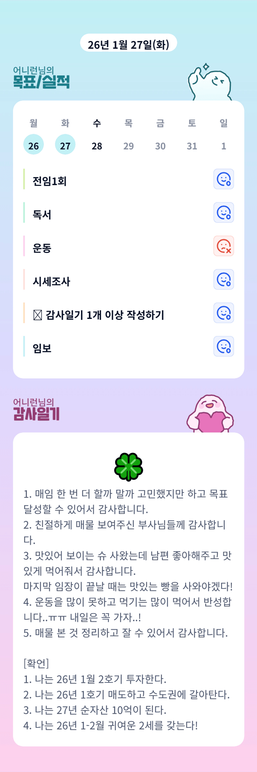 헛 어니런님 1월의 목표가 엄청나네요!! 갈아타기로 2호기 성공하시고 귀여운2세 꼭 찾아오길 큰 응원드립니다❤