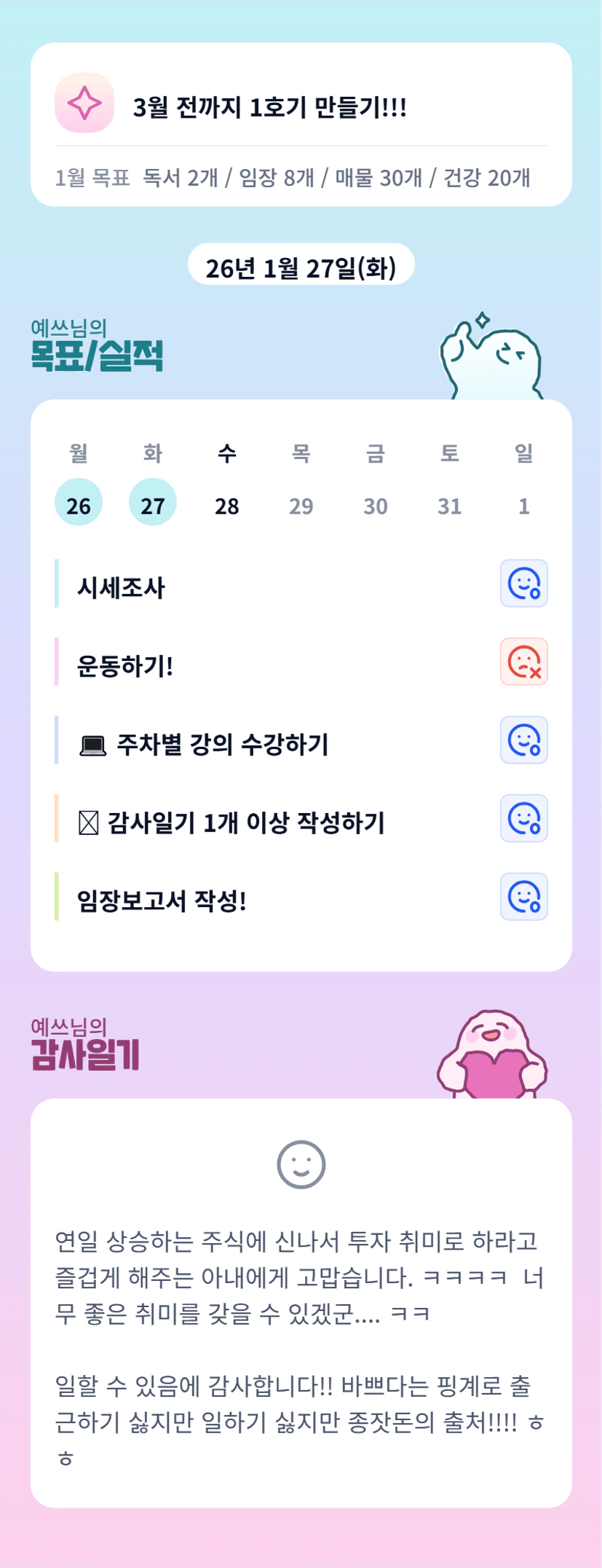 월부 동료들과 꾸준하고 성실하게 목표한바 이루고 싶습니다 !! 예쓰!!!