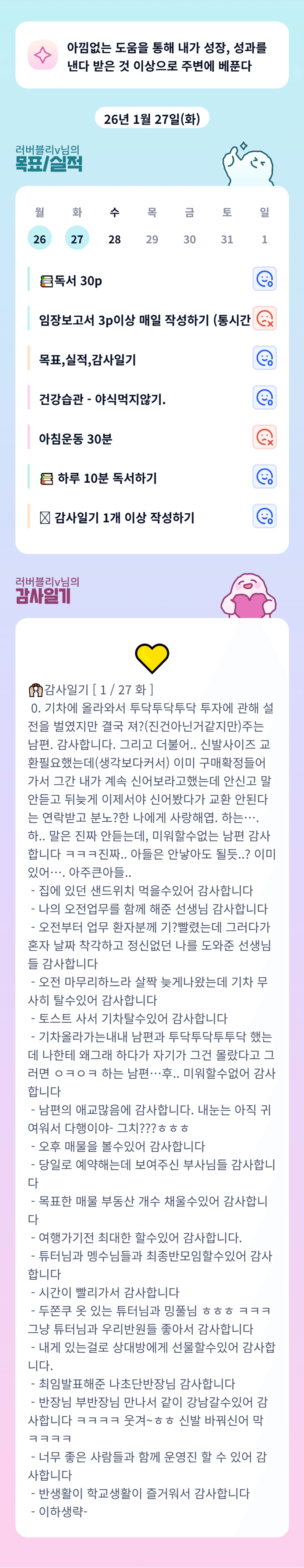 [러버블리v] 26.1.28 목표, 1.27 감사일기 + 칭반