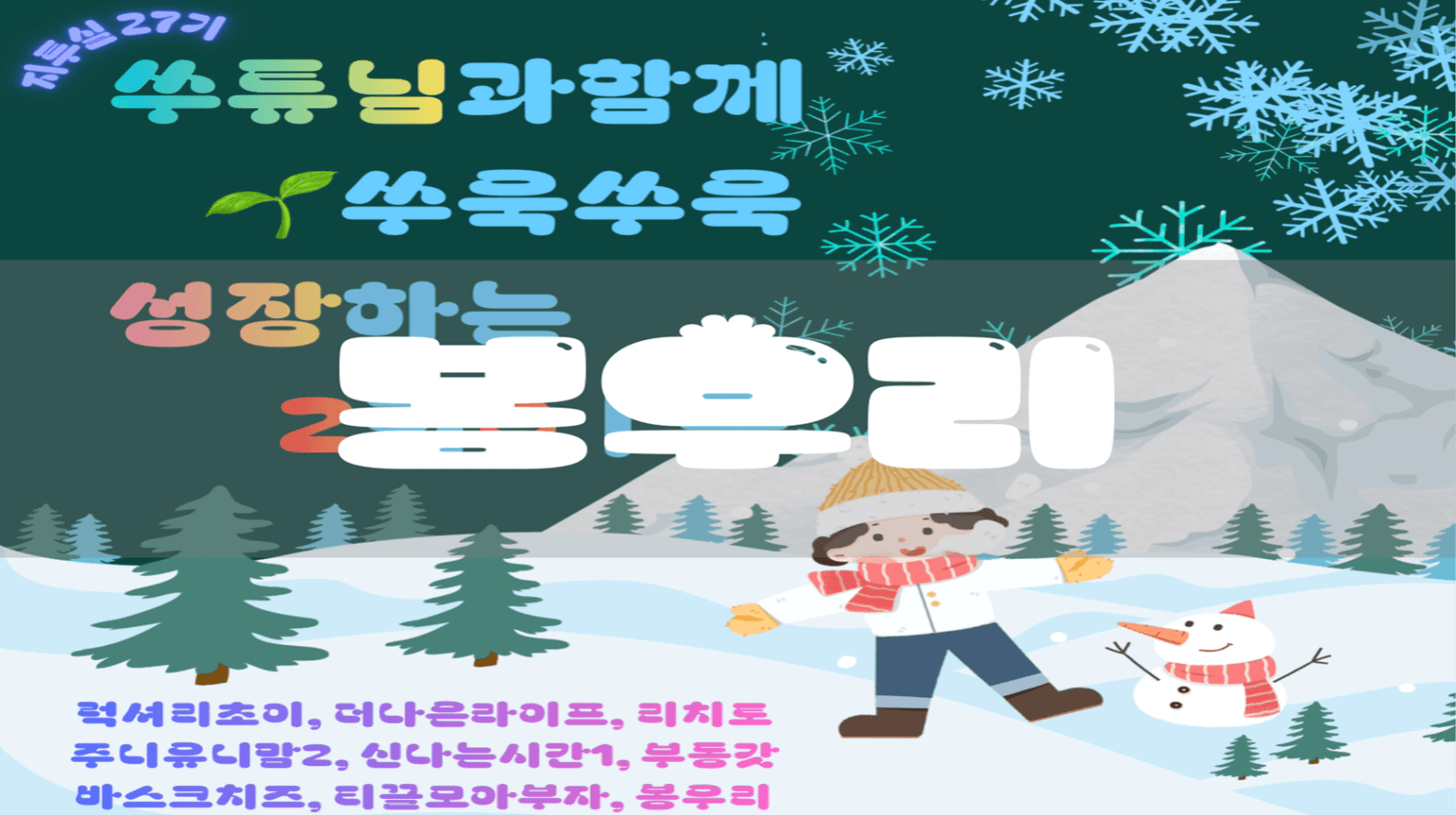 "성장한다"는 말은 항상 설레이면서도 어딘가 모르게 부담이 되는 말이기도 합니다. 꼭 성장해야만 내가 올바른 삶을 살고 있는 것처럼 느낄 수도 있기 때문이라 생각합니다. 하지만 이번 한달을 보내면서 성장이라는 말이 어떤 의미인지를 다시금 생각해 볼 수 있었습니다. 누군가에게는 이전에 하지 못했던 부담이였던 일들을 해내는 과정이 성장일 수도 있고 누군가에게는 동료들과의 이야기를 통해 행동의 변화를 주는 것이 성장이라 말할 수도 있습니다.