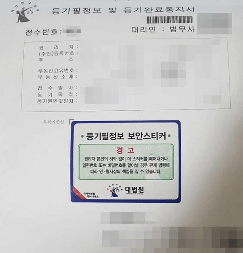 2주 뒤에 등기 완료 통지서와 함께 매매계약서를 보내주시더라구요…