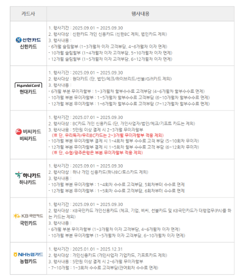 제가 가진 카드가 3개월 무이자 혜택이 있다는 것을 확인하여