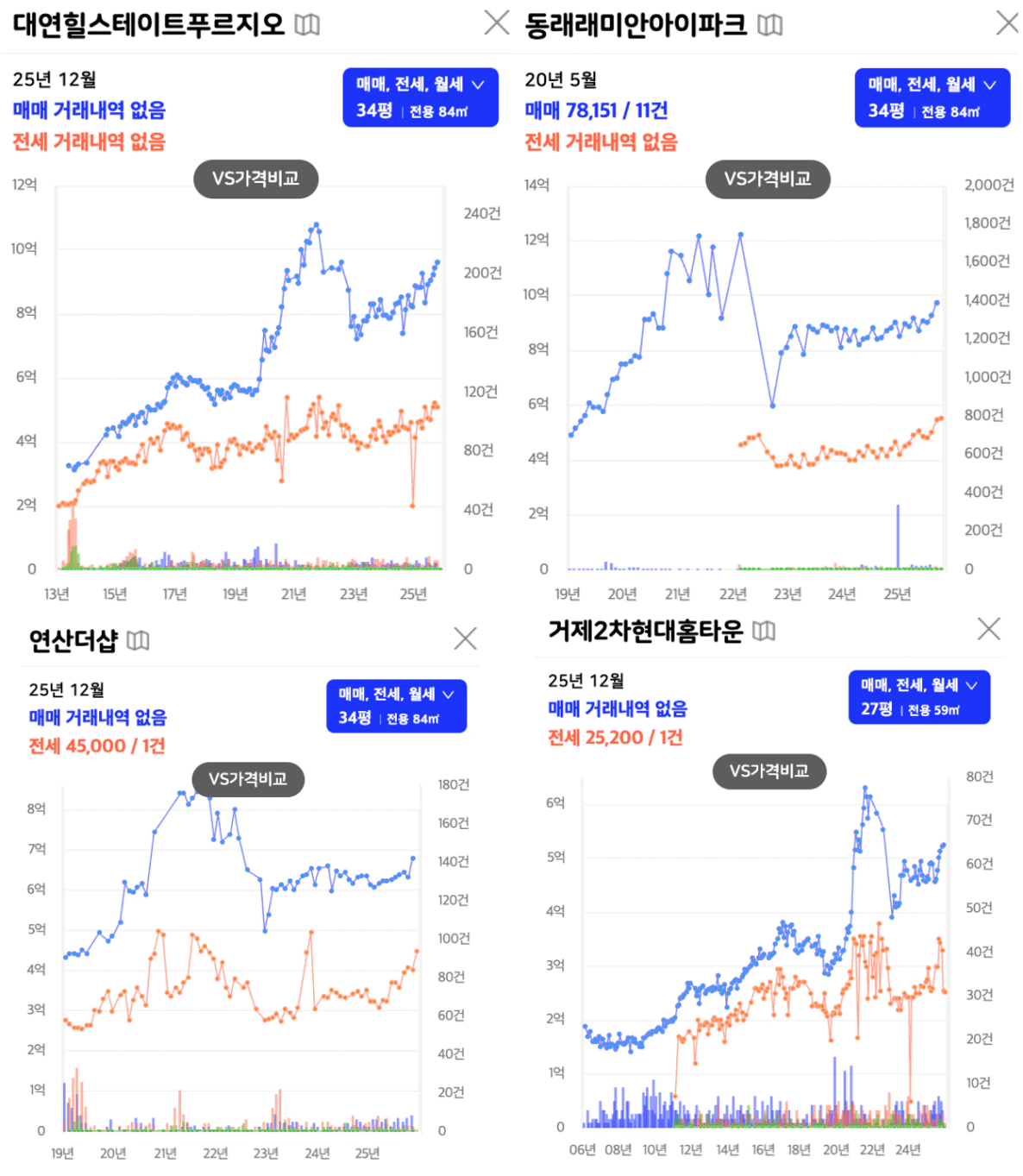 실거주 수요가 매우 강한 동래의 사직은 전세가 가격이 급격히 증가하는 것을 보았는데요.