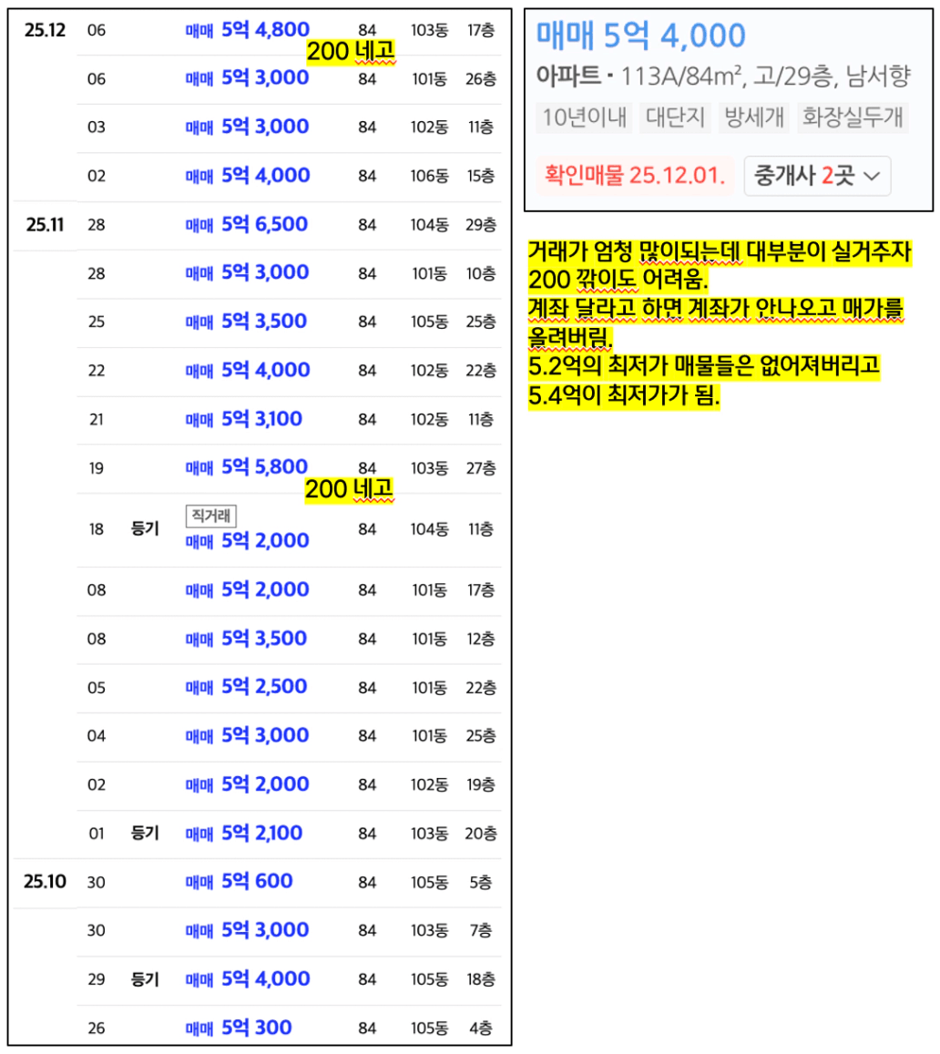 하지만 단지의 모든 매물에 대해 파악하는 수준까지 매물을 보지 않기 때문에